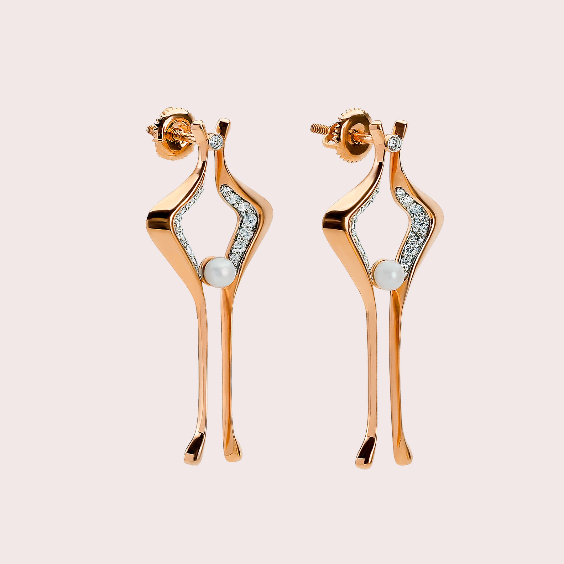 Orion 18K Rose Gold Earrings-ZKT260044 from the Genesis Alpha collection of Zukti celebrate strength and elegance. Inspired by the oyster-pearl analogy, their rose gold and diamond design embodies resilience, rare beauty, and wearable art, making a bold statement for everyday sophistication.