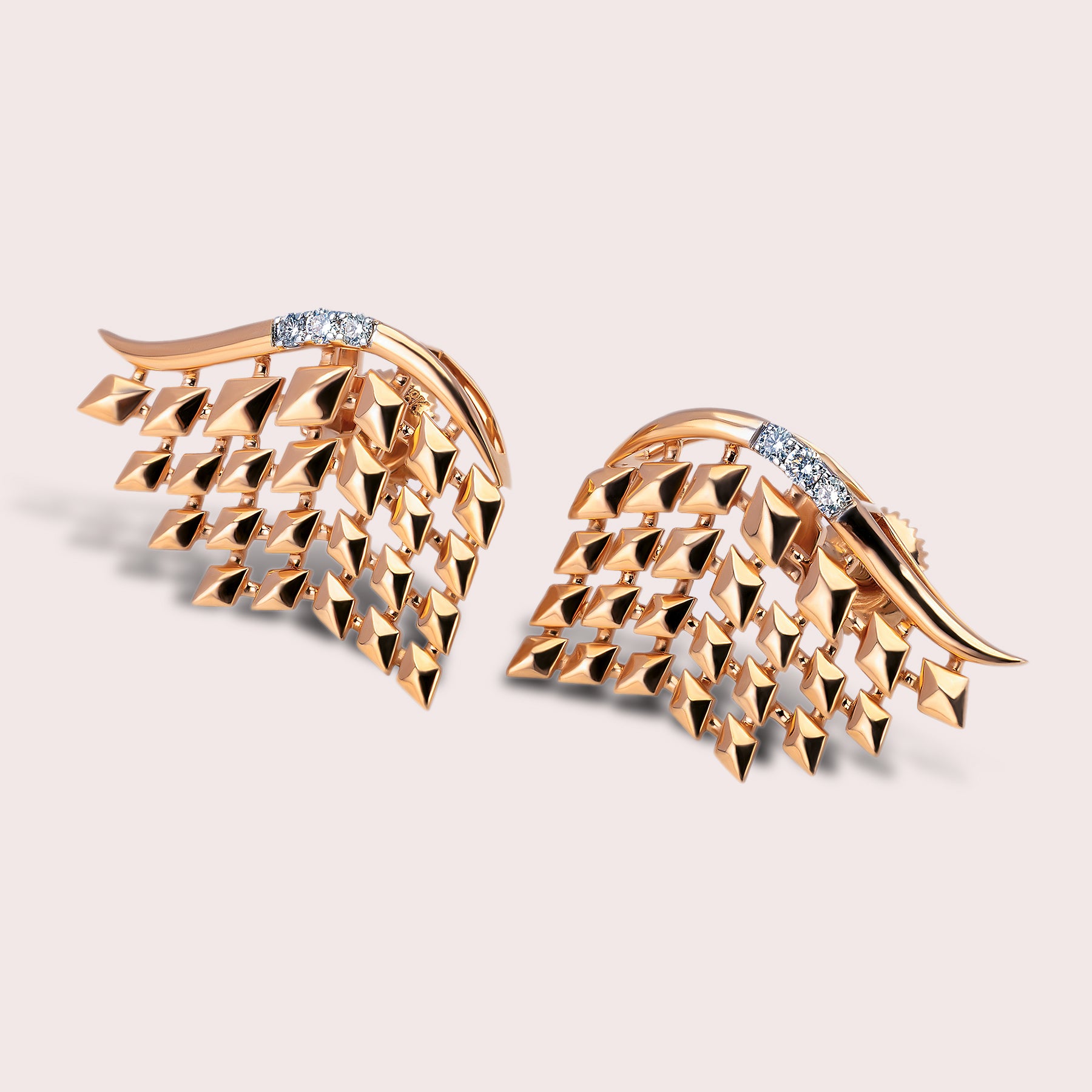 Azar 18K Rose Gold Earrings-ZKT260028 from the Phoenix Ember collection of Zukti celebrate renewal and resilience. Inspired by the Phoenix, their rose gold and diamond design captures ember-like elements, symbolizing transformation, rebirth, and the fiery elegance of a guiding light.
