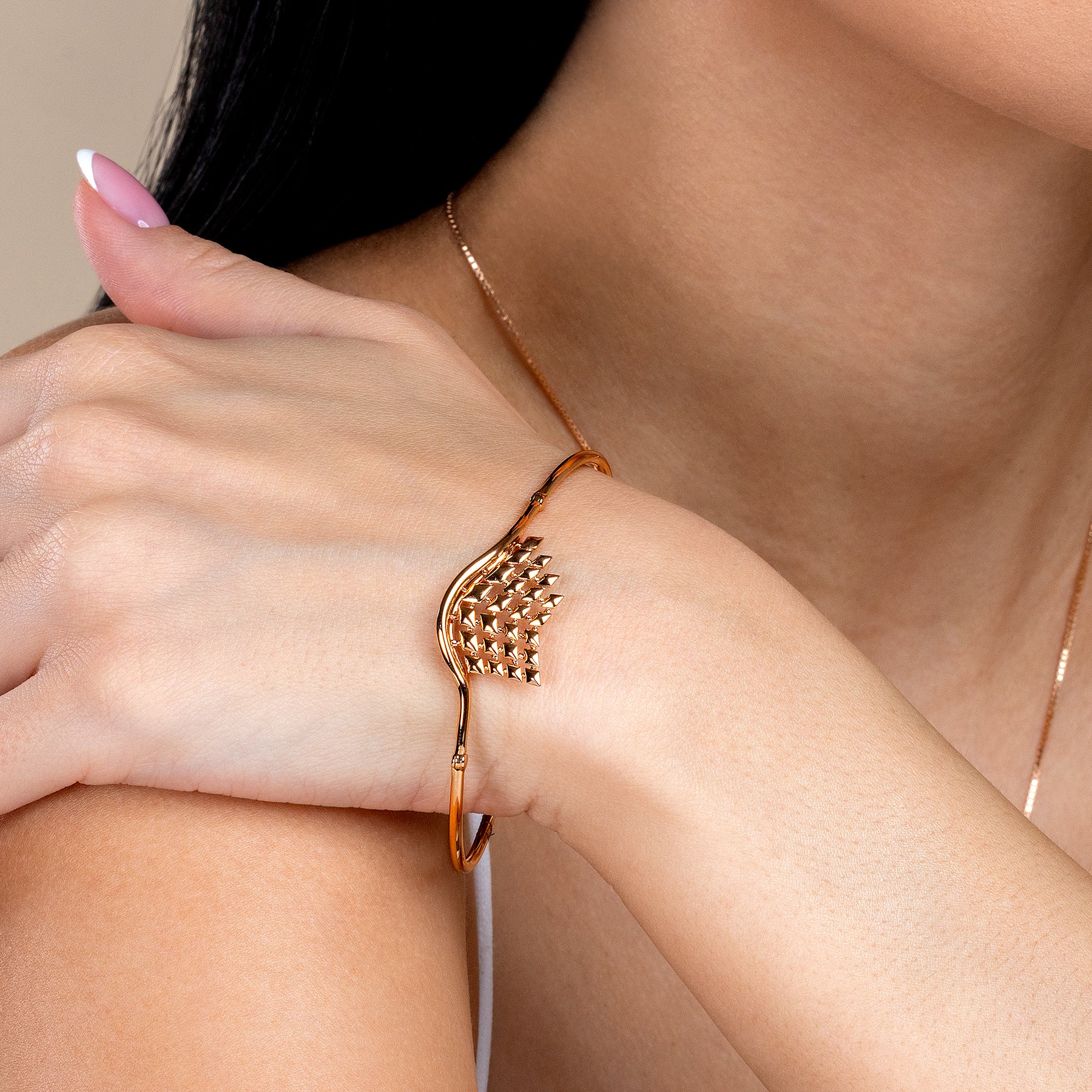 Keahi 18K Rose Gold Bangle-ZKT260009 from the Phoenix Ember collection of Zukti celebrates rebirth and fiery strength. Inspired by the Phoenix, its rose gold and diamond design reflects ember-like details, symbolizing resilience, transformation, and the enduring light that follows every trial.