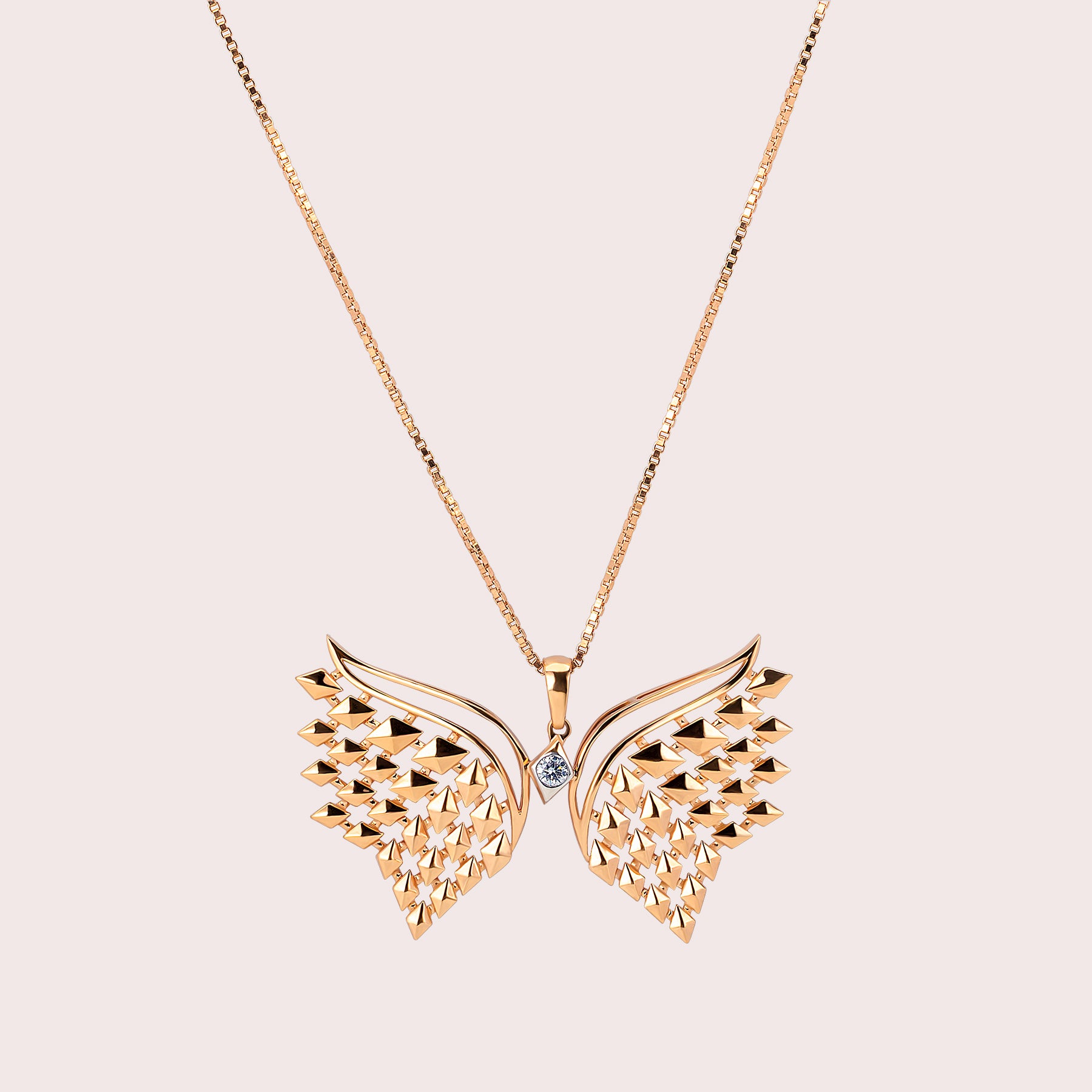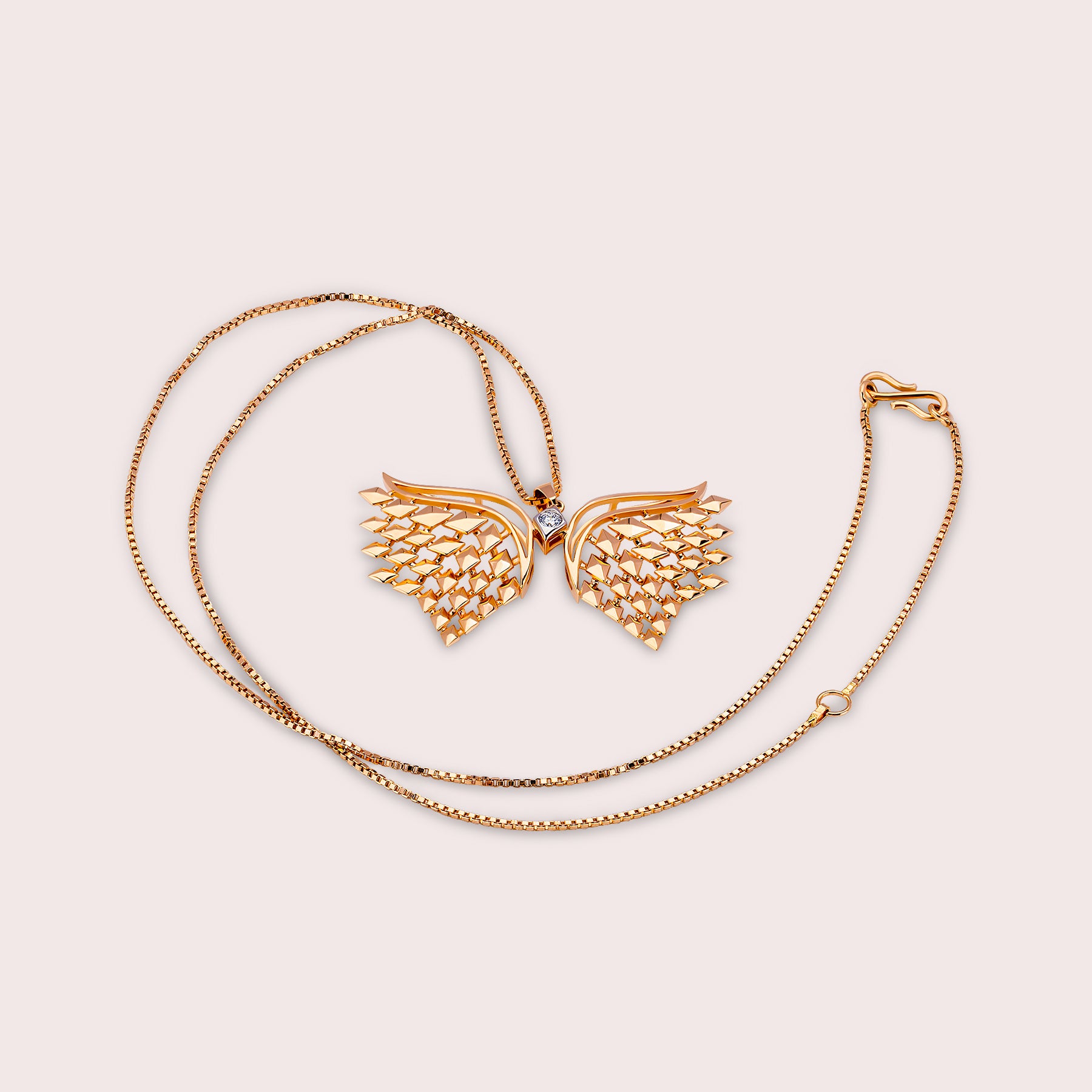 Nuri 18K Rose Gold Pendant-ZKT259975 from the Phoenix Ember collection of Zukti embodies renewal and fiery elegance. Inspired by the Phoenix, its rose gold and diamond design reflects ember-like forms, symbolizing transformation, resilience, and the enduring spark that rises from every trial.