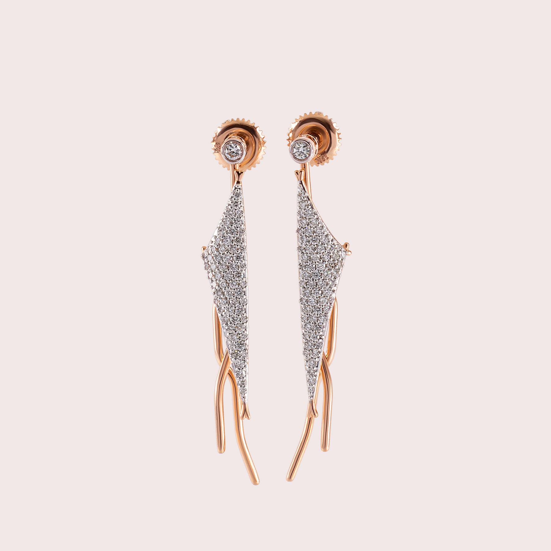 Zephyr 18K Rose Gold Earrings-ZKT260032 from the Thistledown Kite collection of Zukti capture the carefree spirit of childhood. Crafted in rose gold with diamond accents, they symbolize freedom, trust, and the joy of chasing dreams with the wind.